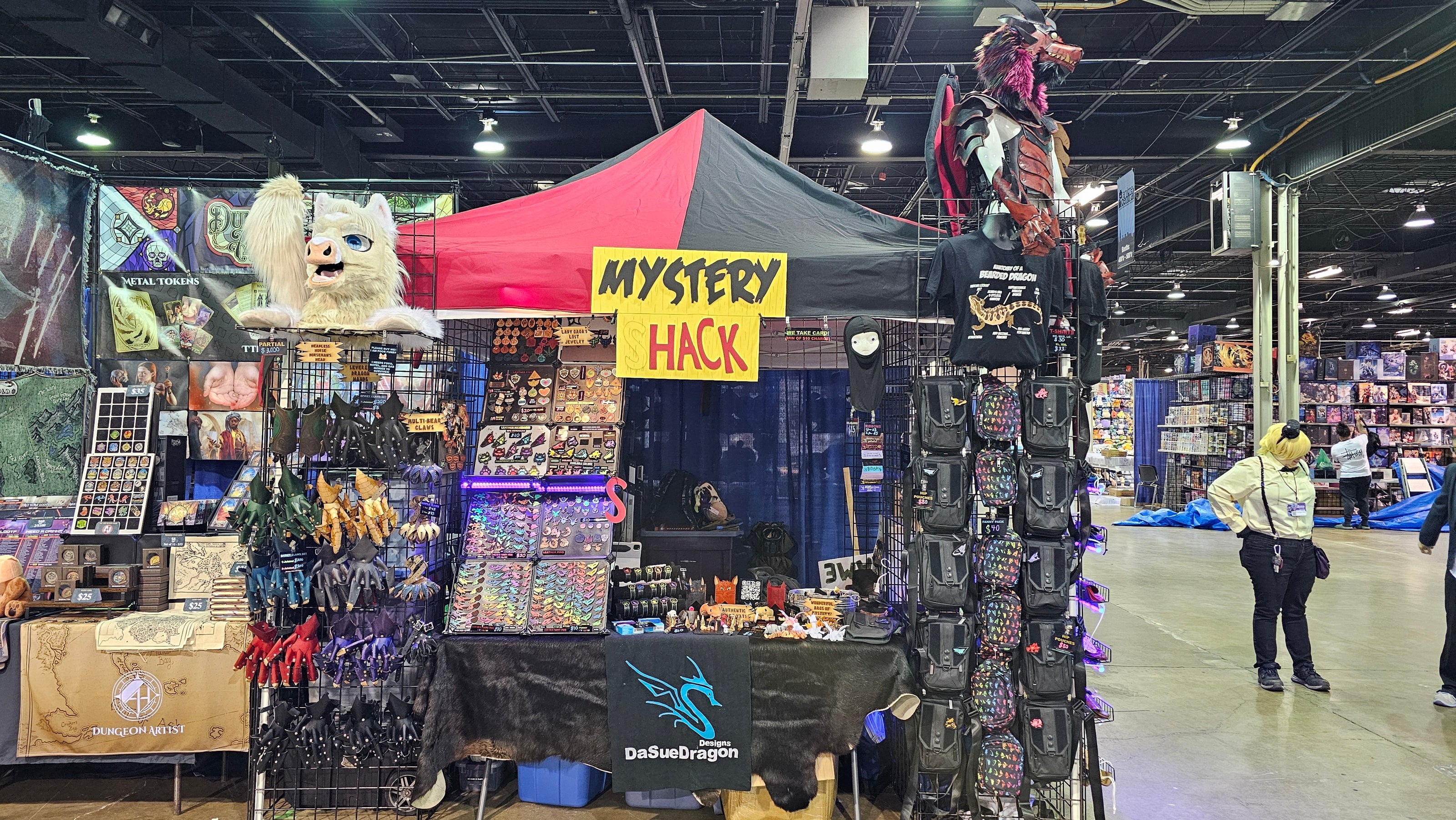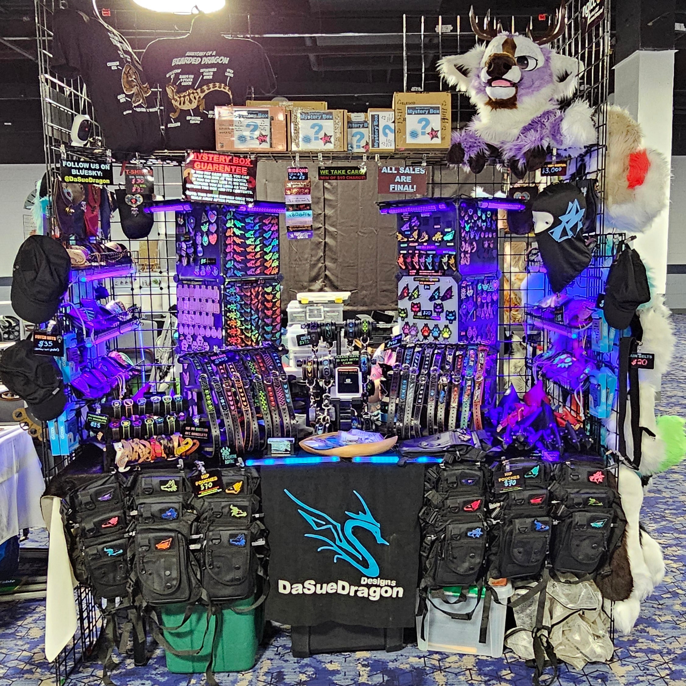 Our 6' inline setup is condensed with most of our sale items on display and leaves enough space to interact with customers. We are able to fit inline with other vendors around us.