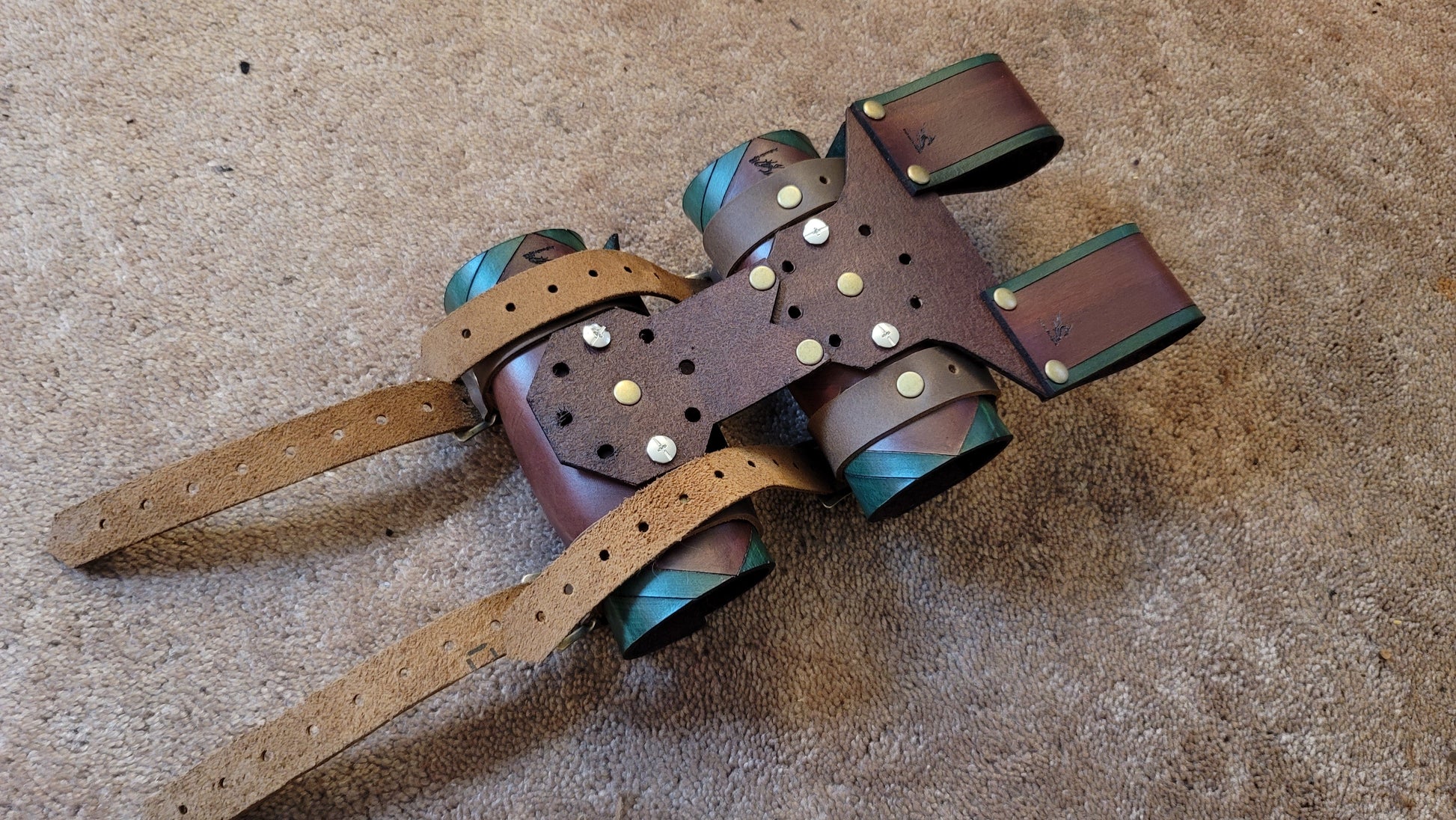 Brown Sheaths: Antique Brass (hypo-allergenic) Buckles