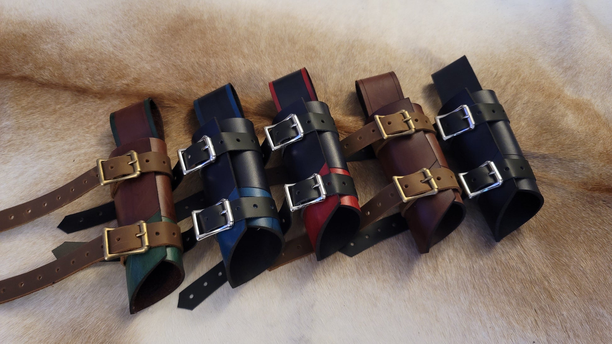 All sheaths are finished with an atom wax finish, which staves off water and all of the edges are finished and rounded with bees wax.