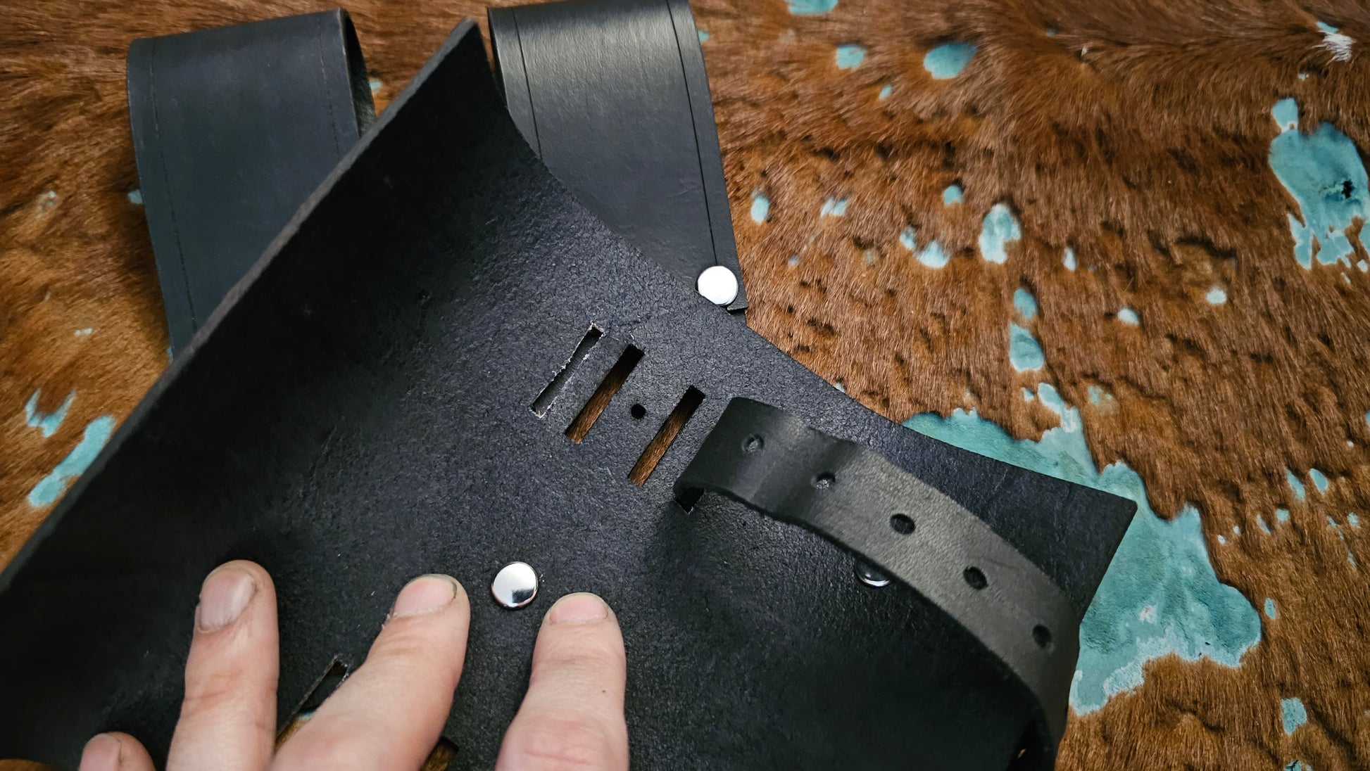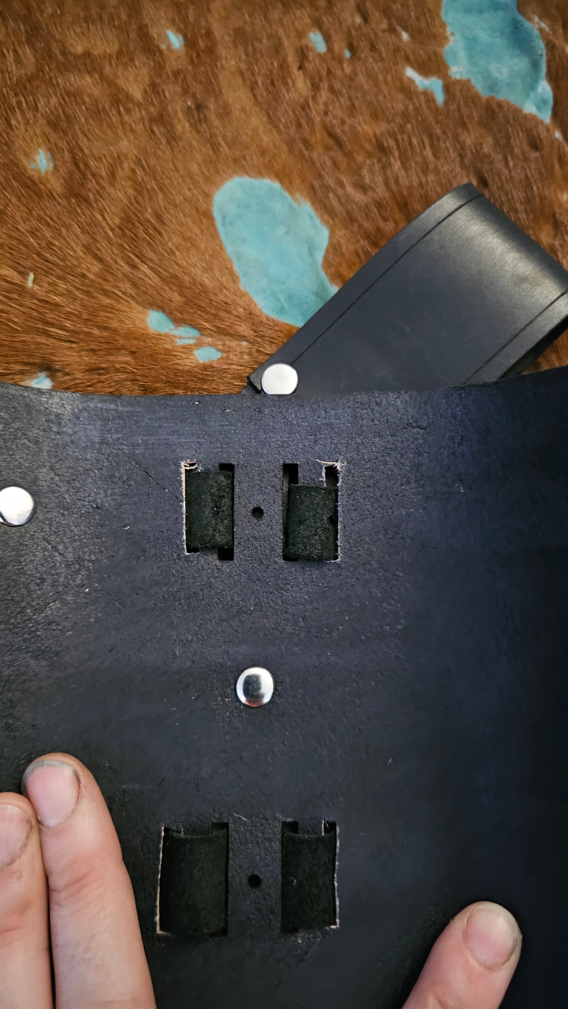 The sheath is held together on the inside and back with 2 Chicago screws.