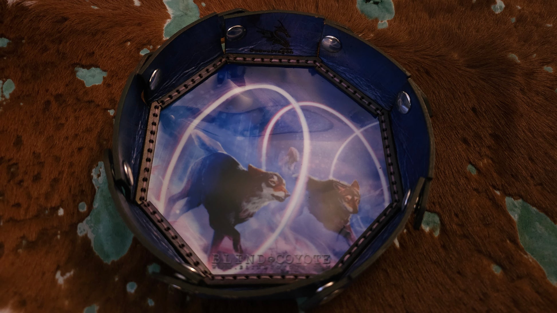 Get your hands on this designer Dice Bowl made in partnership with Blind Coyote! The 8 sides snap together to form edges when you roll dice. This hand-made, hand-dyed leather bowl is perfect for all LARP, ren fair, and cosplay needs. Bring it wherever you go!