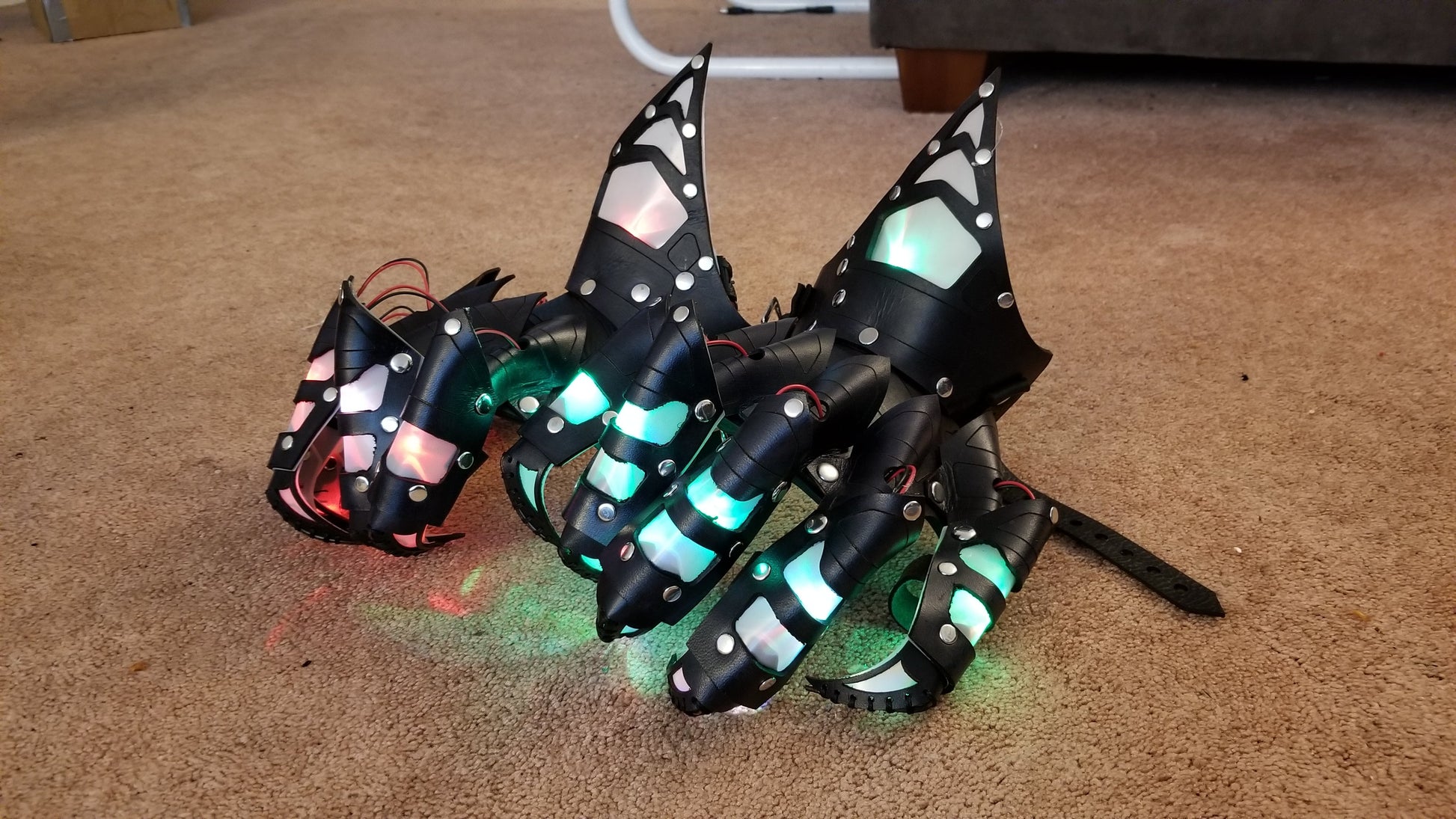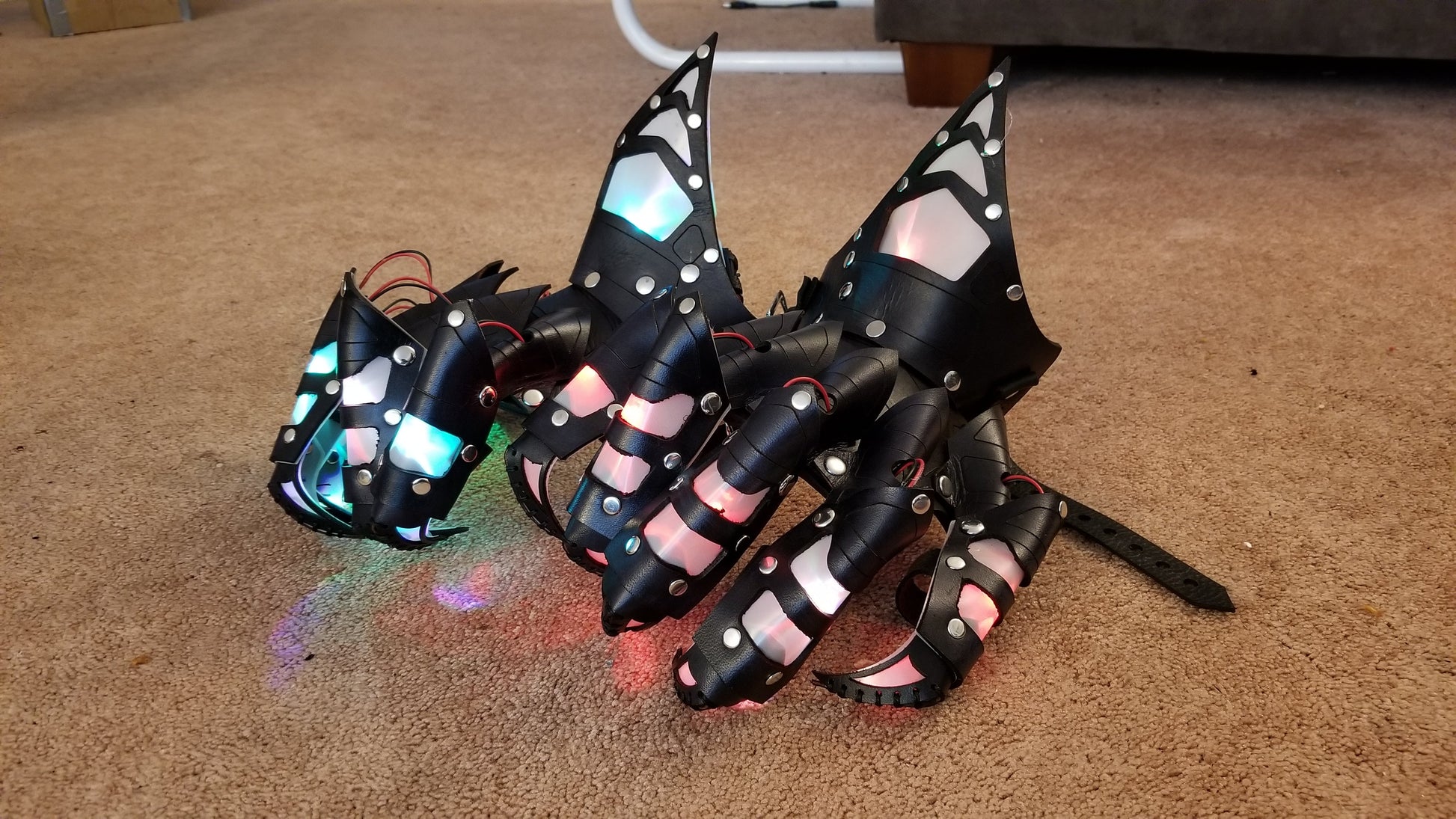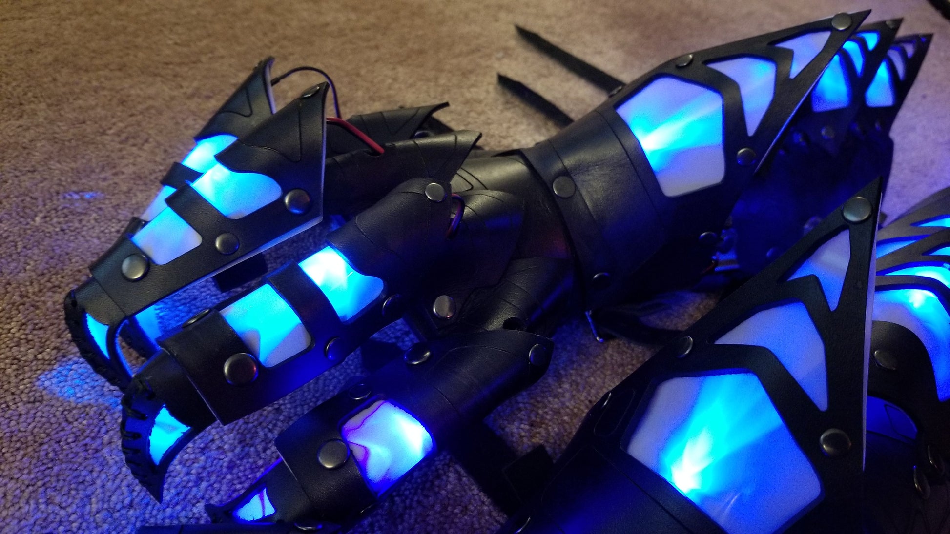 Dragon Leather Articulated Claws and Bracers with Glowing LEDs