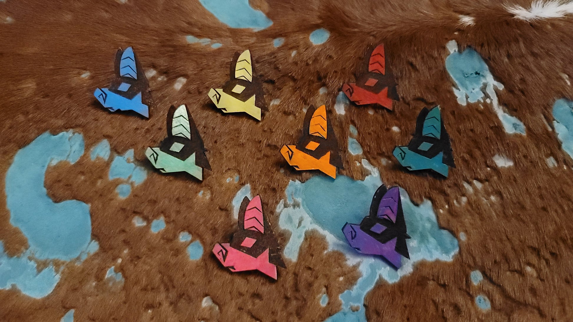 These are hand made, hand colored furry UV glow pins!