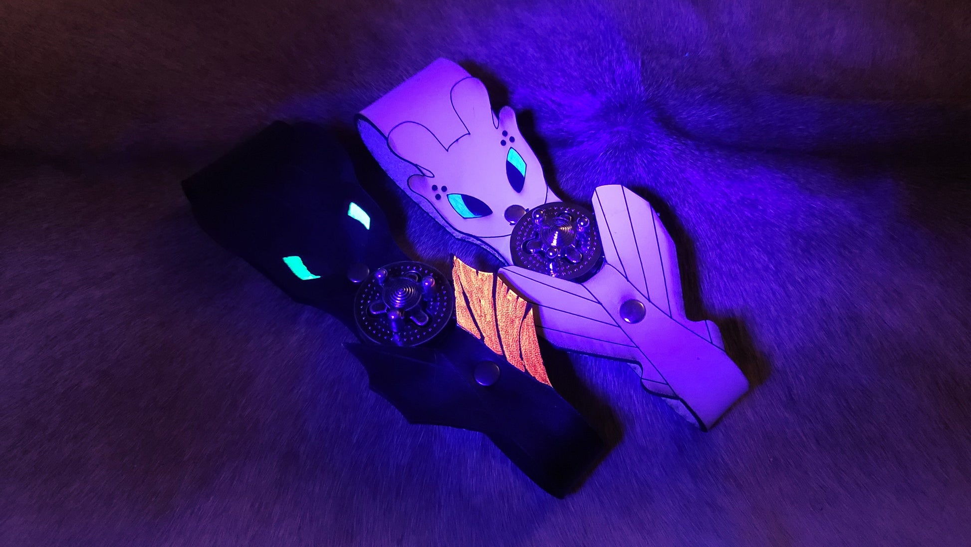 These are hand-made, hand-dyed leather frogs. Featuring that Dragon we all know and love: Toothless from HTTYD! And introducing: the Light Fury!