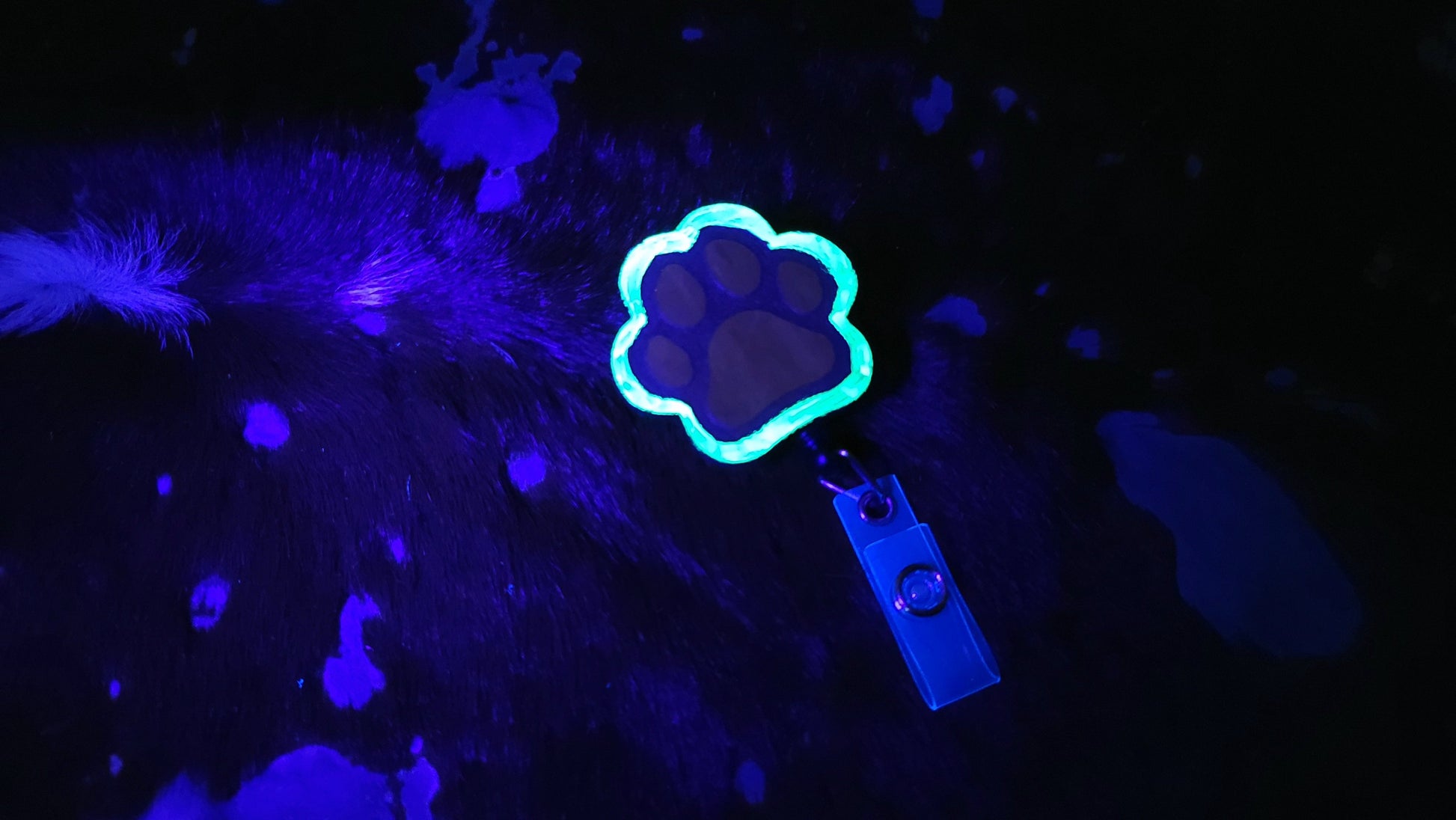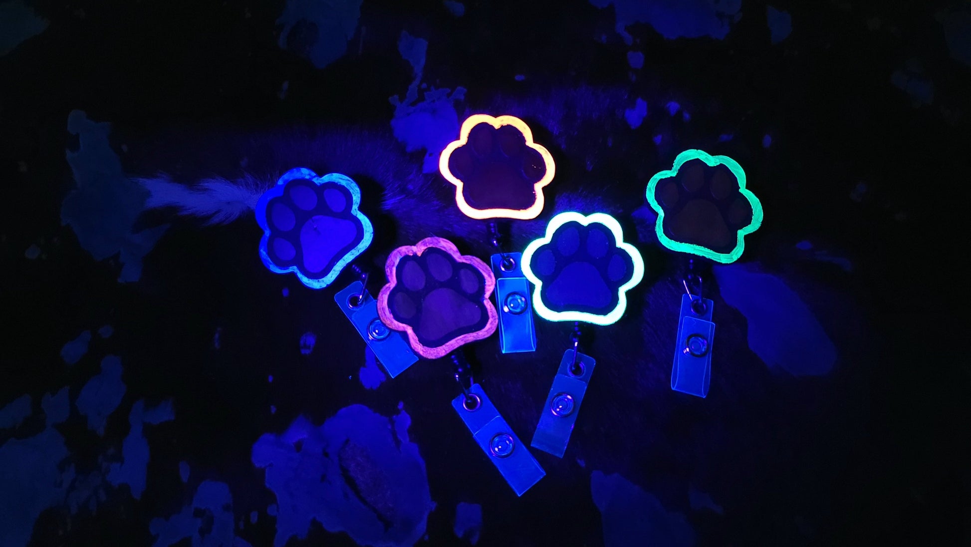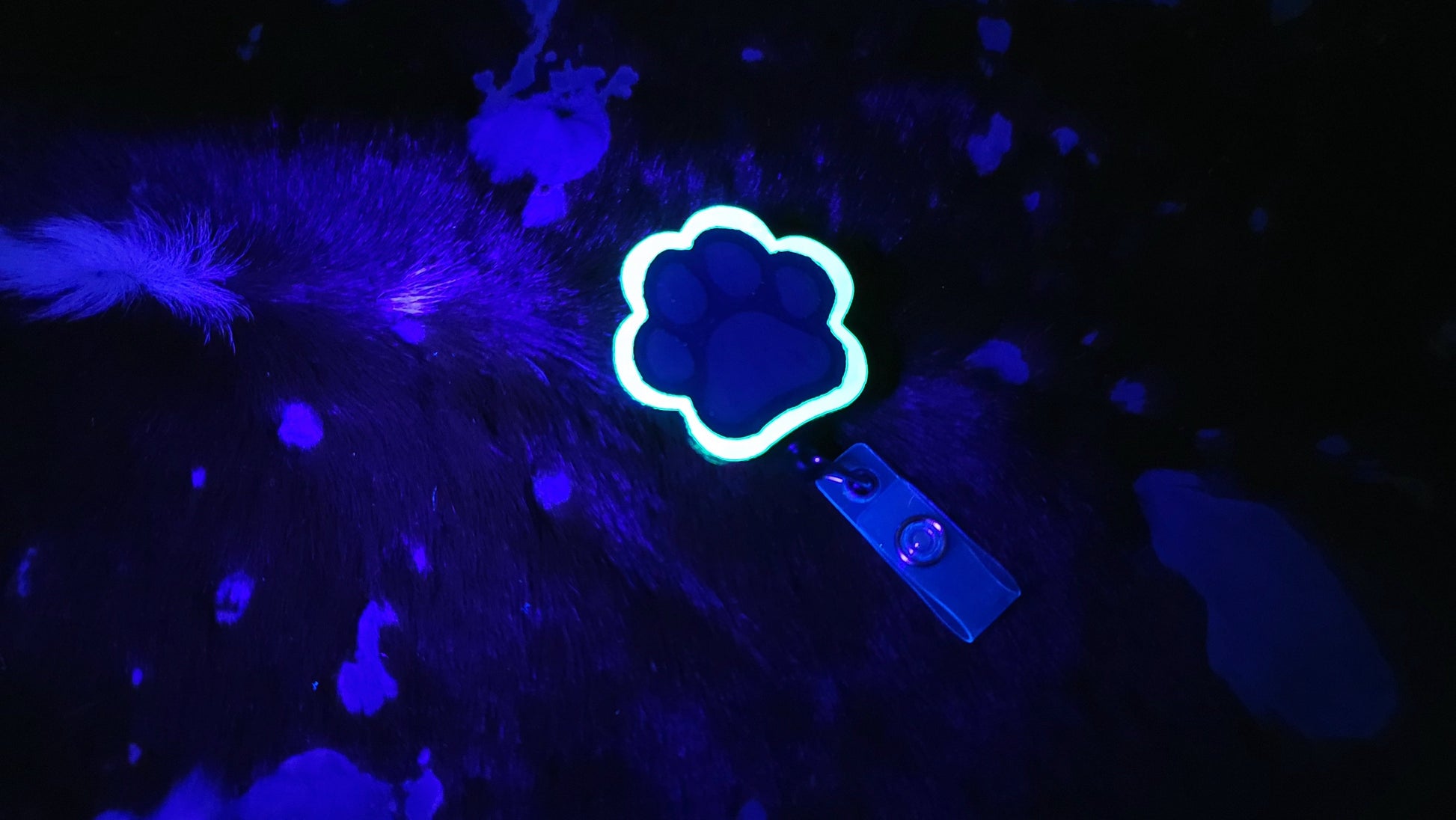 Leather Paw Print Retractable Badge Holder Clip Fastener UV Reactive Glow Furry Accessories
