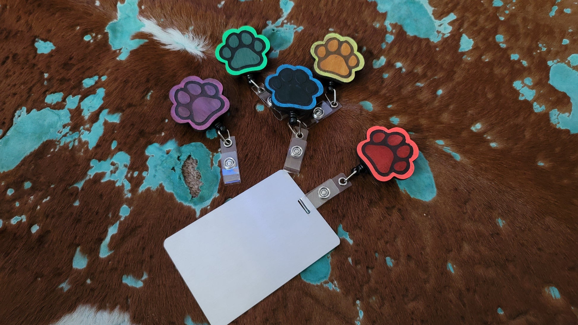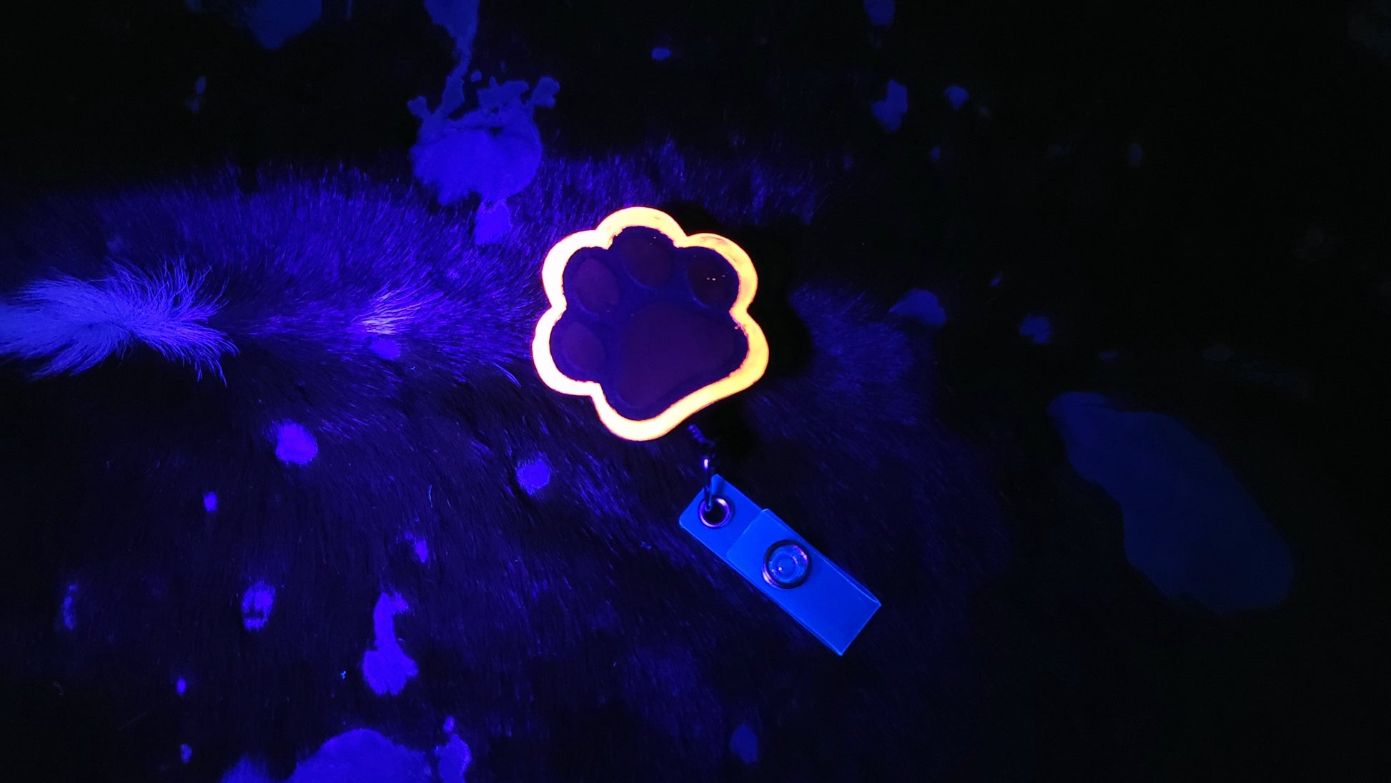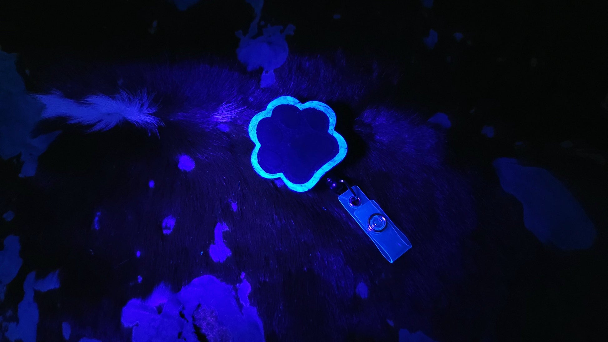 Leather Paw Print Retractable Badge Holder Clip Fastener UV Reactive Glow Furry Accessories