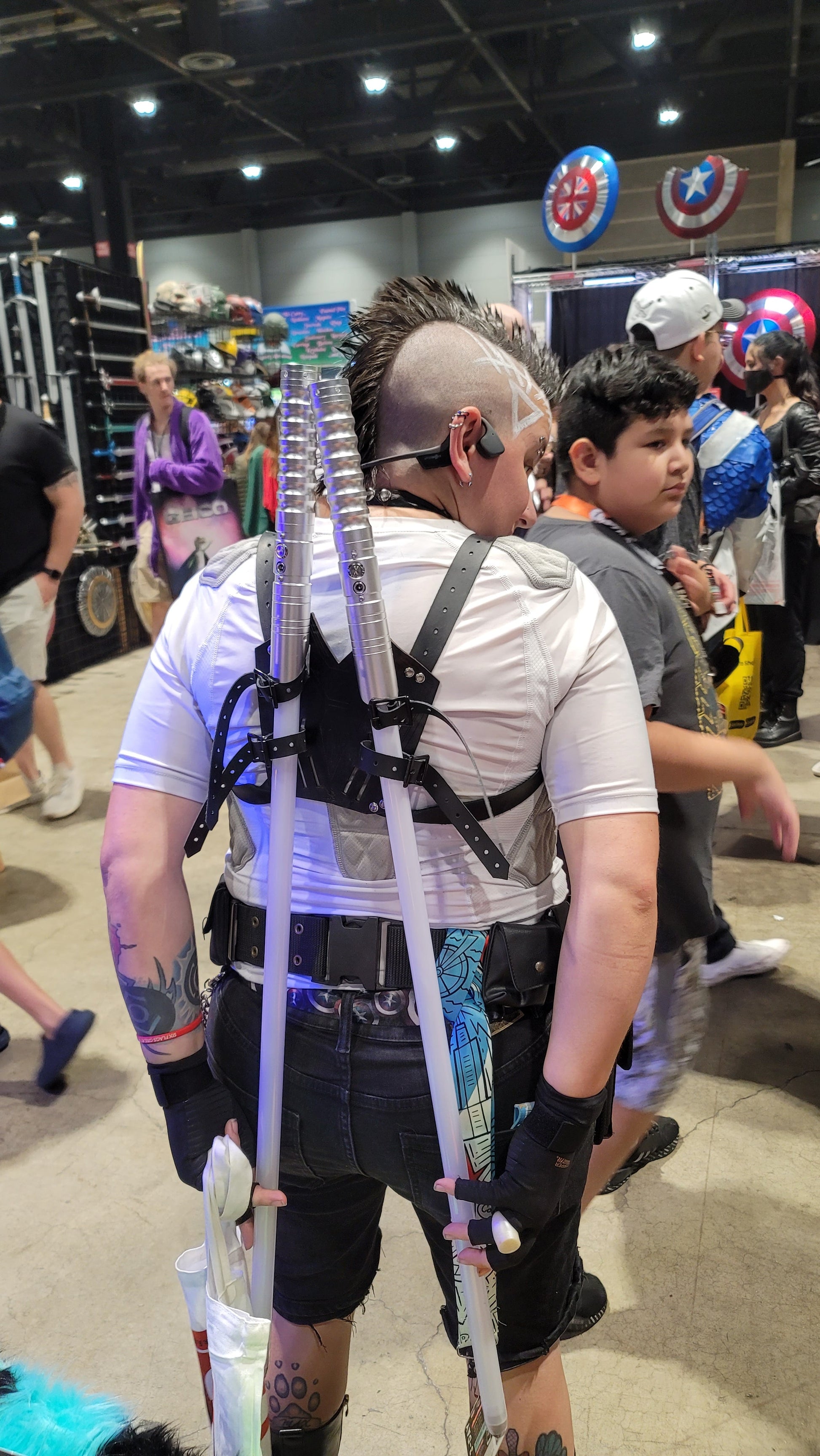 We recommend using the straps in sets of 2 to carry 2 props behind the back, but you CAN fit up to 4 props at various different angles on this sheath.