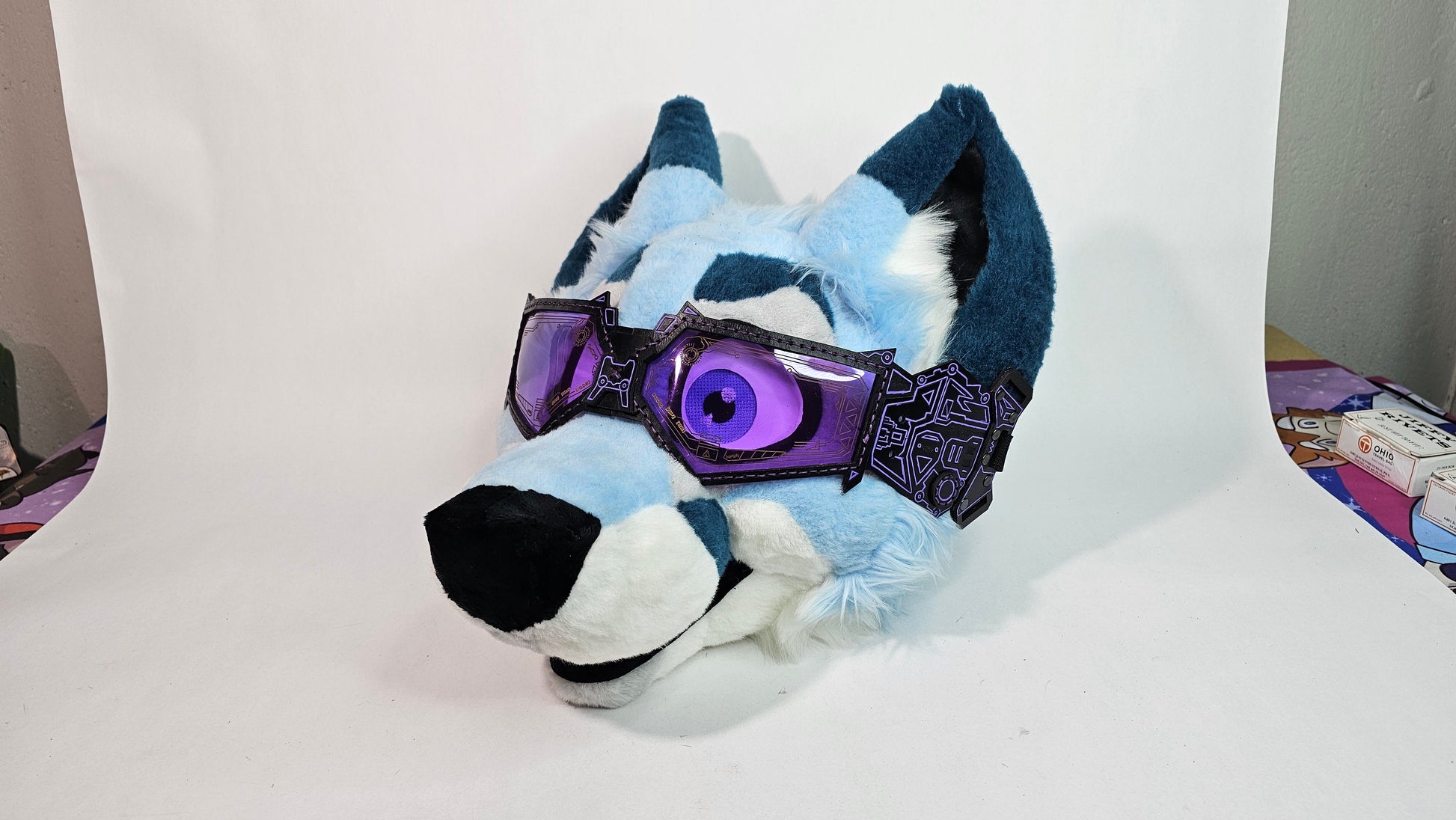 The future is now! Upgrade your style with these future punk goggles in various colors! These are designed to be worn around the back of the fursuit head, with an option to anchor them using the ears.